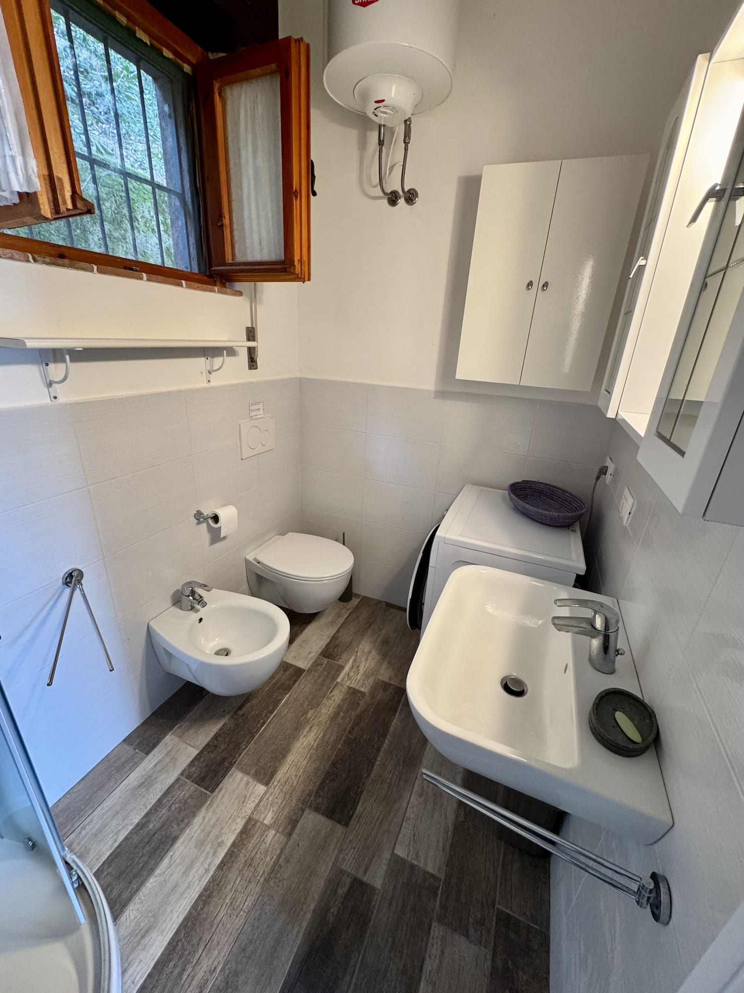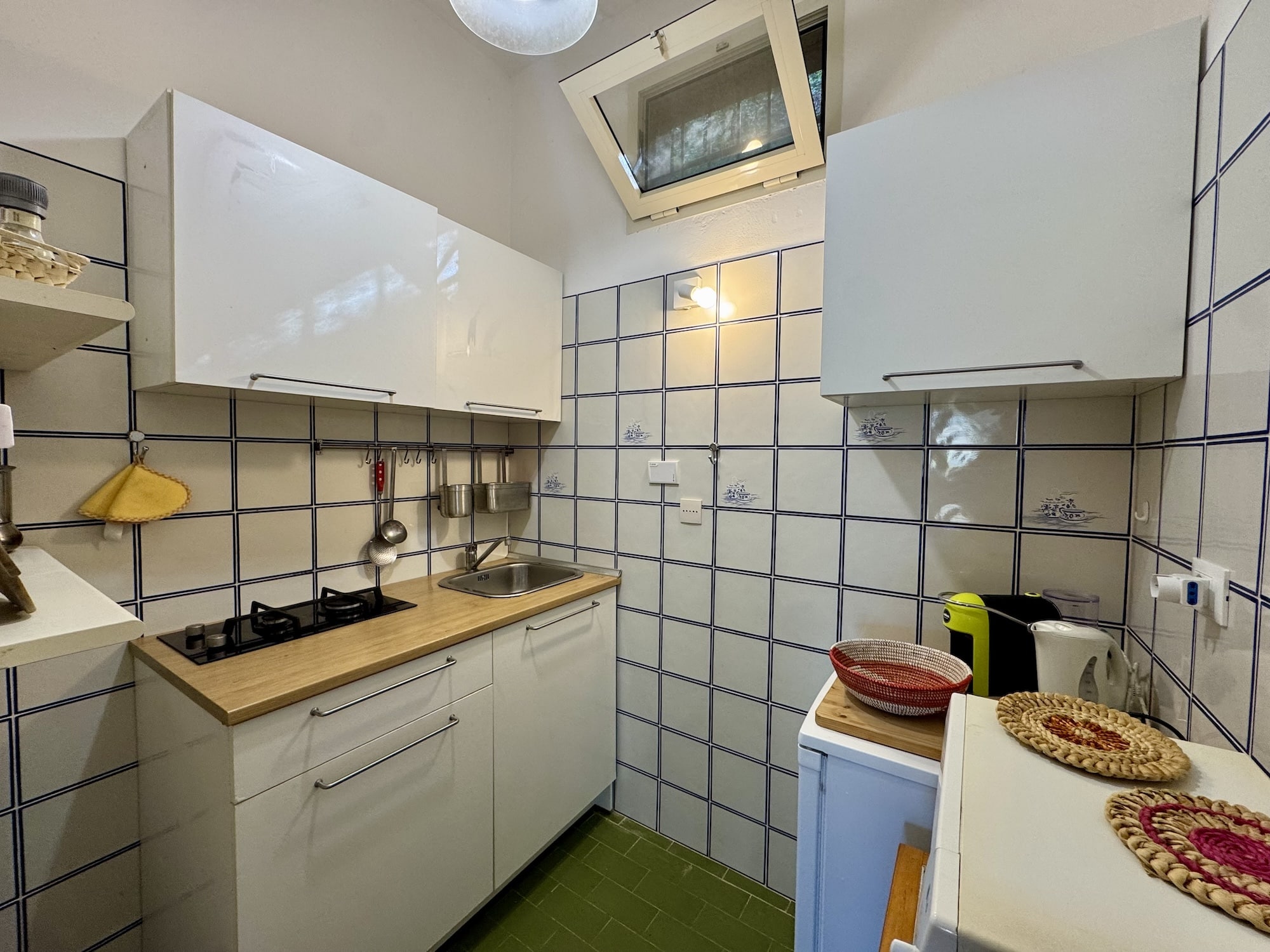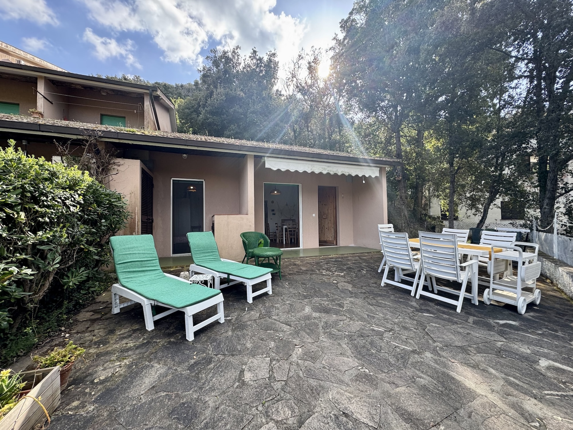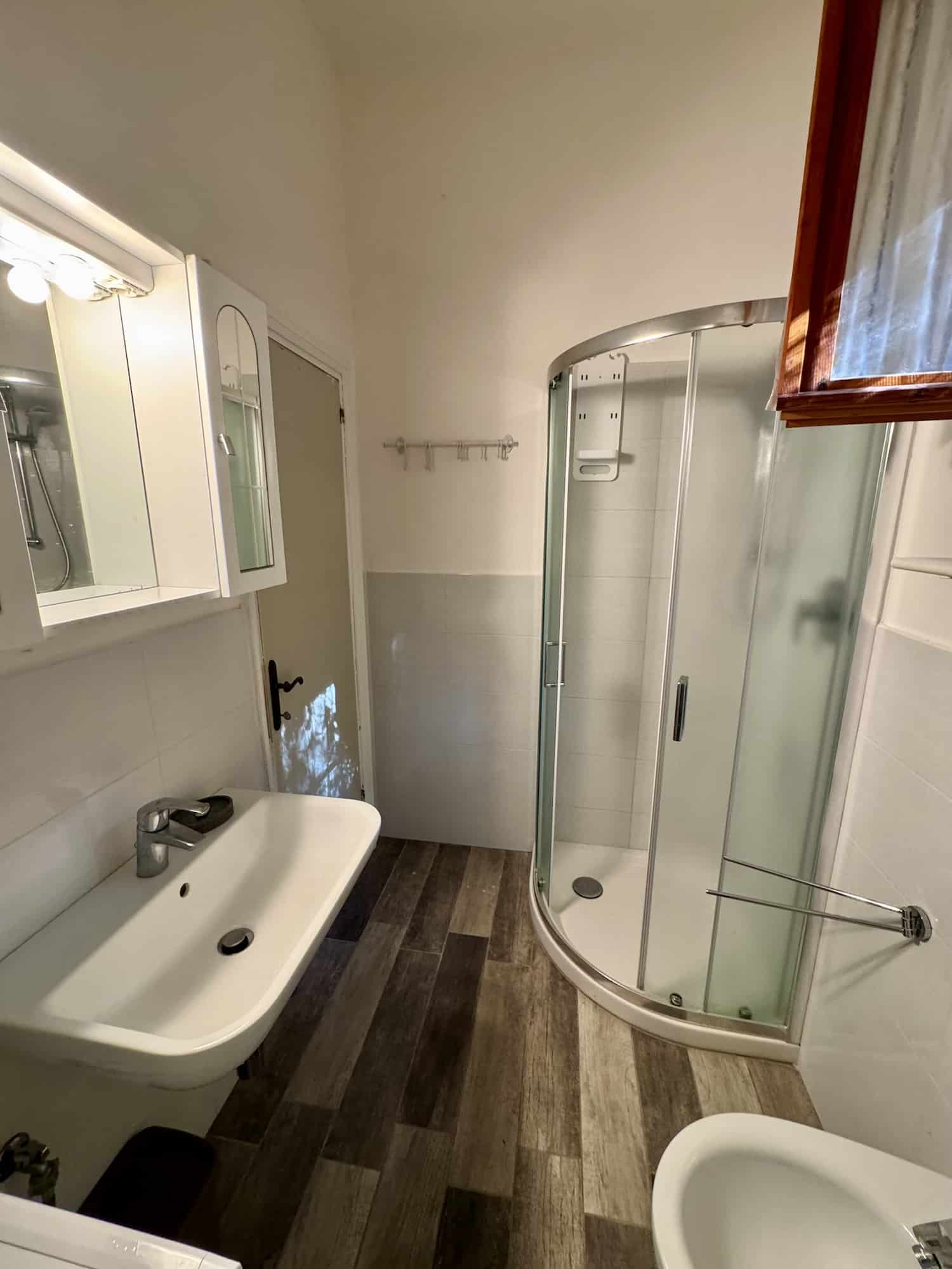 Casa Simona liegt ca. 450 Meter vom Meer entfernt. Ein großer Wohnraum, eine kleine Küche mit Mikrowelle. Zwei Schlafzimmer, mit jeweils einem Doppelbett. Ein Badezimmer mit WC, Bidet, Dusche, und Waschmaschine. Weiter ist noch ein separates WC mit Waschbecken vorhanden. Die große Terrasse mit Blick auf das Dorf Bagnaia ist ideale zum entspannen. Die Unterkunft verfügt über W-LAN und Parkplatz. Casa Simona hat als Nachbarwohnung die Casa Valerio, ideal für Gruppen und befreundete Familien.